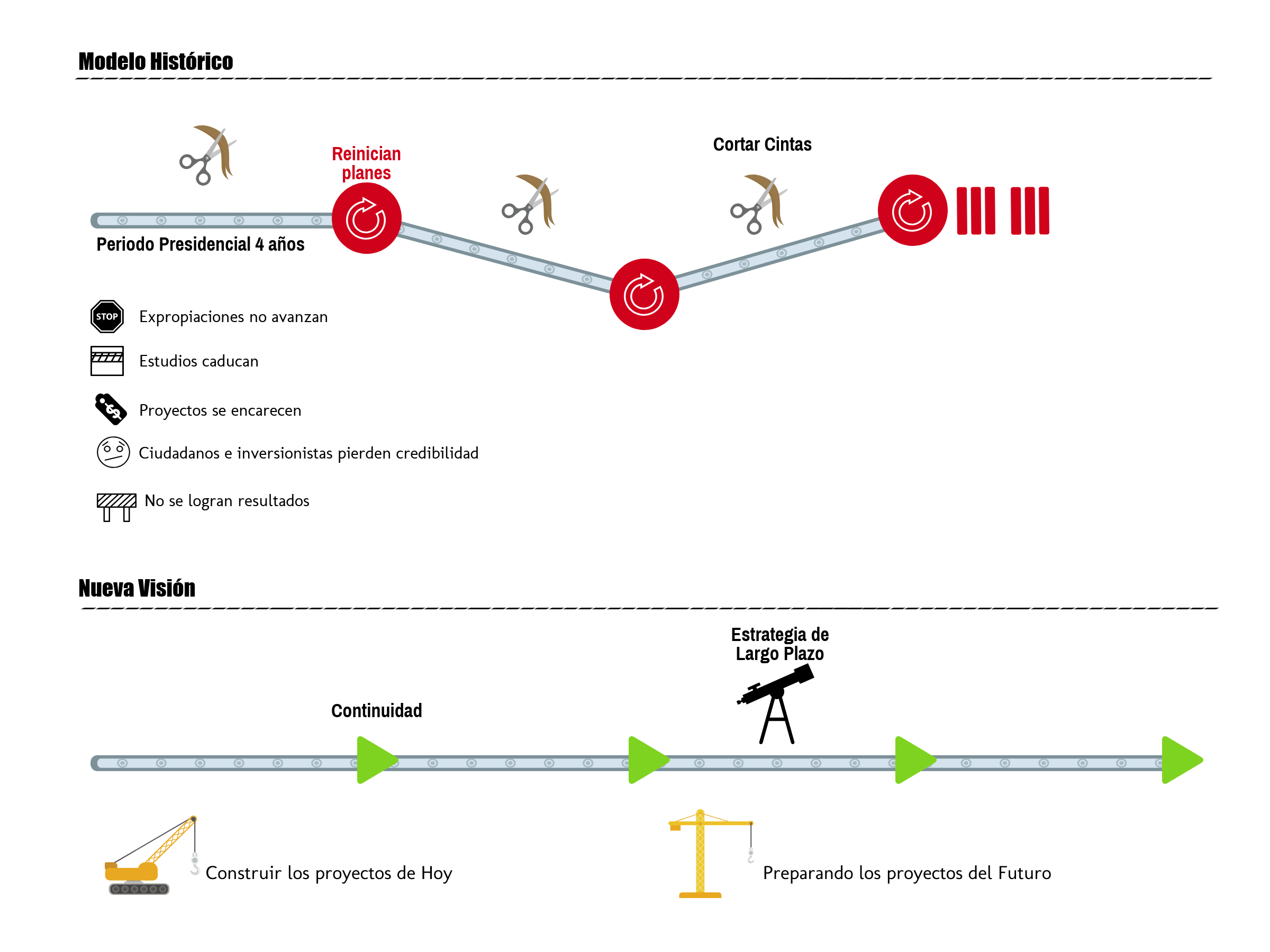 Costa Rica ha optado típicamente por un modelo que se reinicia cada 4 años, que no permite el desarrollo adecuado de las etapas preparatorias y que no ha resultado más que en anhelos y sueños sin cumplir. Ahora tenemos la oportunidad de establecer una nueva visión en la cual los gobiernos no se evalúen por la cantidad de obras que inauguran, sino por el avance en la ejecución de acciones en línea con una planificación estratégica de largo plazo. Y esto no implica parálisis por análisis, sino ser realistas y empezar a caminar en serio. El nuevo paradigma debe ser construir las obras de hoy sin dejar de preparar los proyectos de mañana. Un ejemplo claro es la conexión Hacienda Vieja-Garantías Sociales (3 km). Mientras nos hemos enfocado en buscar soluciones “rápidas e inmediatas” (que resultan en nada), paralizamos el proceso de expropiación de terrenos. Hagámonos la pregunta, ¿qué sería de ese proyecto si desde que se realizó el estudio de factibilidad para la concesión San José-Cartago en 2001 el país hubiese mantenido un esfuerzo sostenido en los procesos de expropiación? o ¿Cuántos estudios de factibilidad han caducado (y se deben rehacer) por el hecho de no articular el desarrollo de los mismos con la puesta en marcha de acciones concretas de los proyecto?… Y la historia se repite en múltiples casos. Tenemos 2 caminos: nos auto-engañamos y seguimos igual o damos espacio a la técnica y las decisiones visionarias.