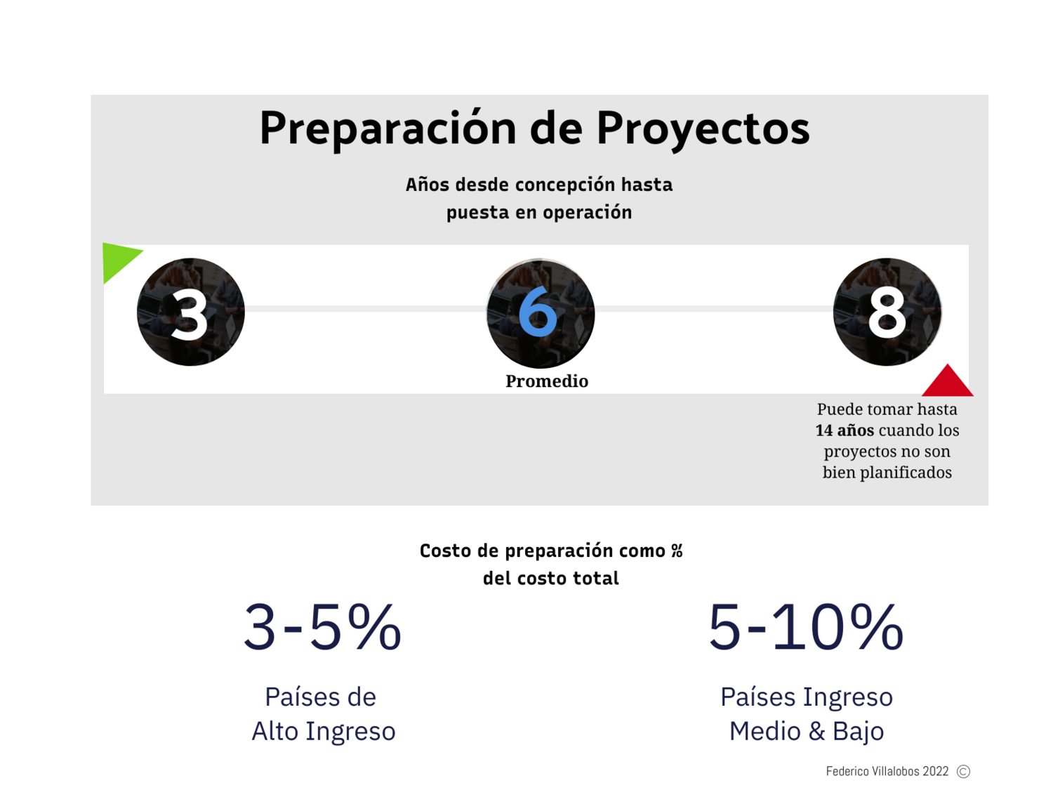 De hecho, la exigencia por parte de los potenciales financiadores requiere que el modelo de negocio se base en sólidos estudios técnicos, legales y financieros. De acuerdo con datos del Infrastructure Monitor 2021 preparado por el Global Infrastructure Hub, la preparación de proyectos es la principal condición para generar mayores niveles de inversión. Un proceso típico toma alrededor de 6 años y un costo que varía de acuerdo a la planificación previa y complejidad del proyecto. Es decir, camino corto no existe, las únicas 2 alternativas son: hacerlo bien o improvisar.